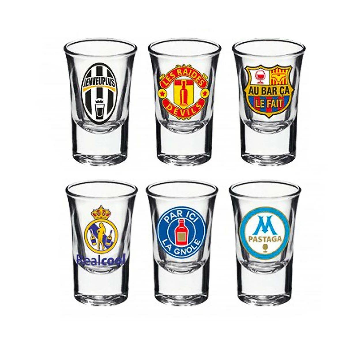 - 6 verres à liqueur parodiques basés sur le monde du football,