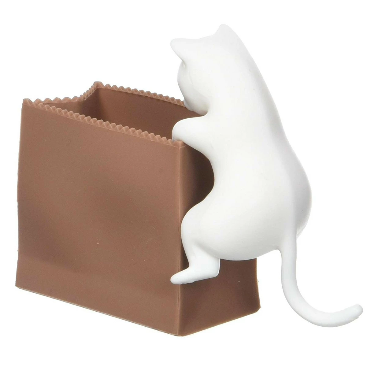 Le est composĂ© d’un sac fabriquĂ© en silicone dans lequel vous pourrez dĂ©poser vos trombones et d’un joli petit chat magnĂ©tique. Il vous suffit de dĂ©poser le petit matou sur le rebord du sac pour avoir un porte-trombones amusant et insolite. Pour saisir un trombone, plongez le minou dans le sac, il en ressortira avec des trombones collĂ©s sur lui. Les amateurs de chat adoreront cet accessoire de bureau original.
