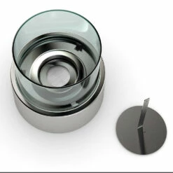 Posée sur votre table de salon ou de table à manger, la cheminée de table ronde au Bioéthanol réchauffera les coeurs et procurera une atmosphère chaleureuse et unique au sein de votre intérieur. La cheminée de table est entièrement en métal avec des parois en verre pour un design pure et sans artifices. Elle fonctionne à l’éthanol bio (à base de betteraves, en vente en grande surface de bricolage ou chez un revendeur de cheminées) et brûle de manière inodore et sans résidus ou fumée. La cheminée d’intérieur est livrée avec un brûleur, un couvercle pour étouffer la flamme. C’est un cadeau déco absolument original qui combine tous les avantages d’un feu d’agrément sans les inconvénients d’une cheminée traditionnelle.