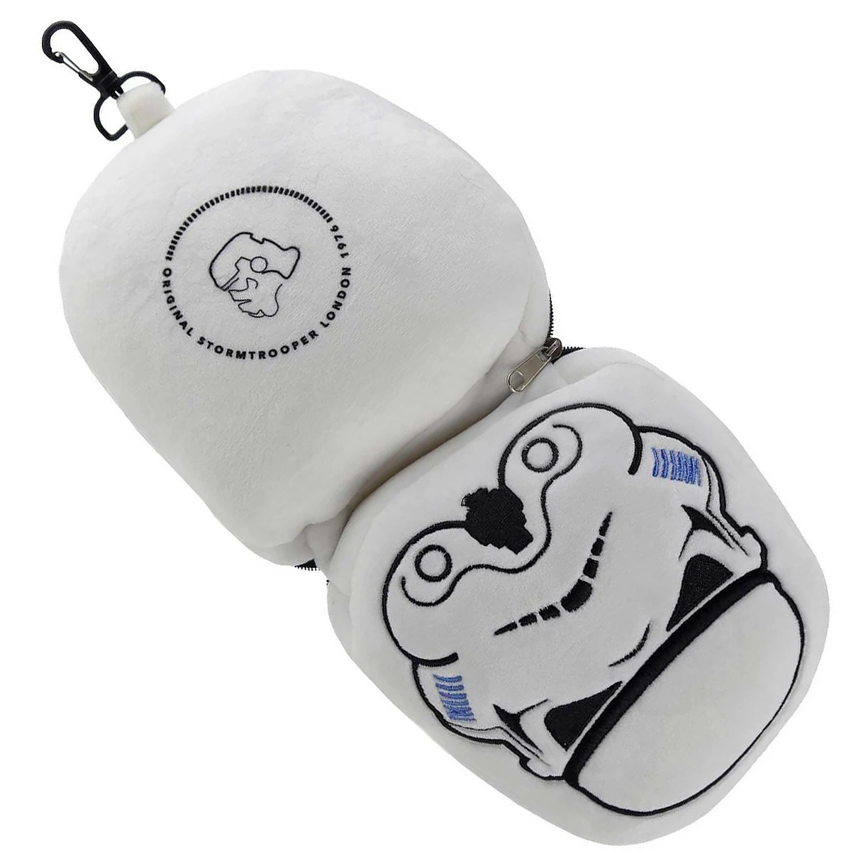 Sous la forme d’un Stormtrooper en peluche se cache un astucieux coussin de voyage.