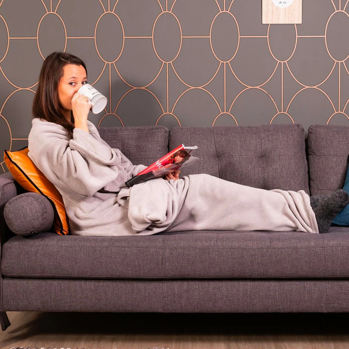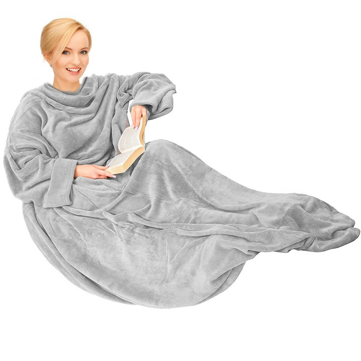 La, qu’est-ce que c’est ? Il s’agit d’une grande couverture polaire légère, douillette et confortable avec des manches. Très douce au toucher, légère, douillette, ultra moelleuse et chaude à souhait avec de grandes manches flottantes conçues afin de ne pas avoir l’impression que vous êtes sous une couverture. La couverture à manche est conçue pour maintenir votre corps tout entier couvert et confortablement installé tout en conservant la possibilité d’attraper votre télécommande de TV, votre livre ou toute autre chose. Concrètement, vous êtes délicatement enveloppé dans et vous pouvez continuer à utiliser vos bras et vos mains sans vous découvrir. Il est à préciser que la couverture à manches ne comporte pas de fermeture dans le dos, il est donc déconseillé d’être intégralement nu en dessous car en vous levant vous exposeriez inévitablement à la vue de votre entourage , votre « arrière-boutique »…