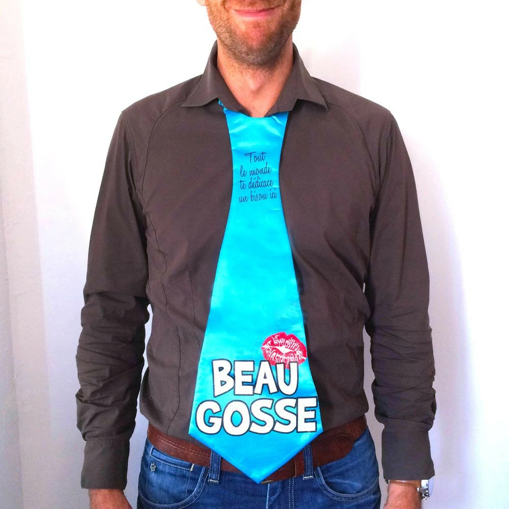 La Cravate géante beau gosse se porte avec n’importe quelle tenue et nul besoin de savoir faire un noeud de cravate car celle-ci tient avec un élastique et un velcro. La Cravate géante beau gosse, c’est le cadeau idéal pour un anniversaire (tous âges), un enterrement de vie de garçon, un mariage ou une fête déguisée !