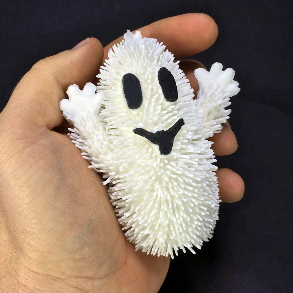 Croyez-vous que les fantômes paraîtraient moins méchants s’ils se mettaient à clignoter en bleu et en rouge ? Découvrez le par vous même avec ce petit fantôme anti-stress lumineux. Tout moux, tout doux, extensible et compressible avec de nombreux petits picots, le Fantôme anti-stress lumineux s’illumine dès que vous le tapotez sur une table. Un cadeau anti-stress original et super effrayant !