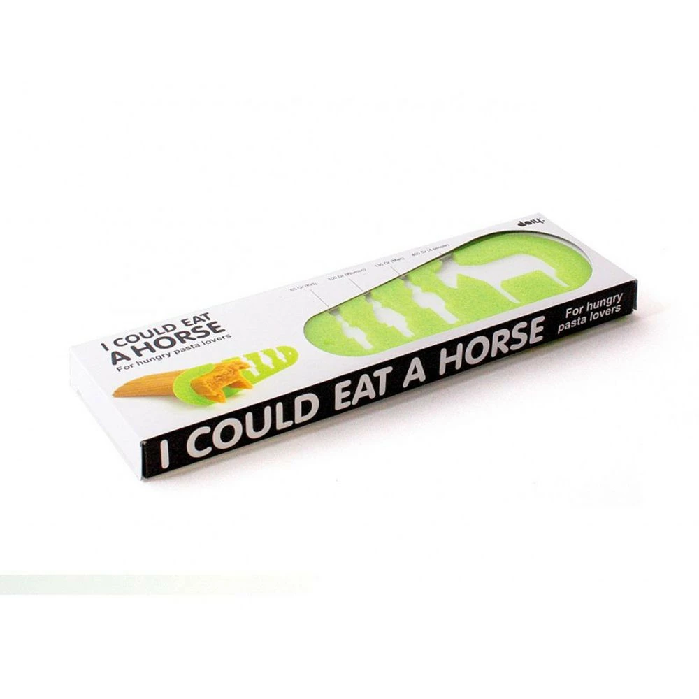 Vous êtes un gros mangeur type « dose de cheval » ou plutôt consommateur homéopathique type « enfant de 5 ans » ? le Mesureur à spaghetti dose de cheval, vous permet de déterminer exactement la quantité de spaghettis nécessaires pour un enfant, une femme, un homme … ou même un cheval ! Même si vous sentez que vous pourriez manger un cheval, cette partie du mesureur correspond à une dose pour quatre personnes !