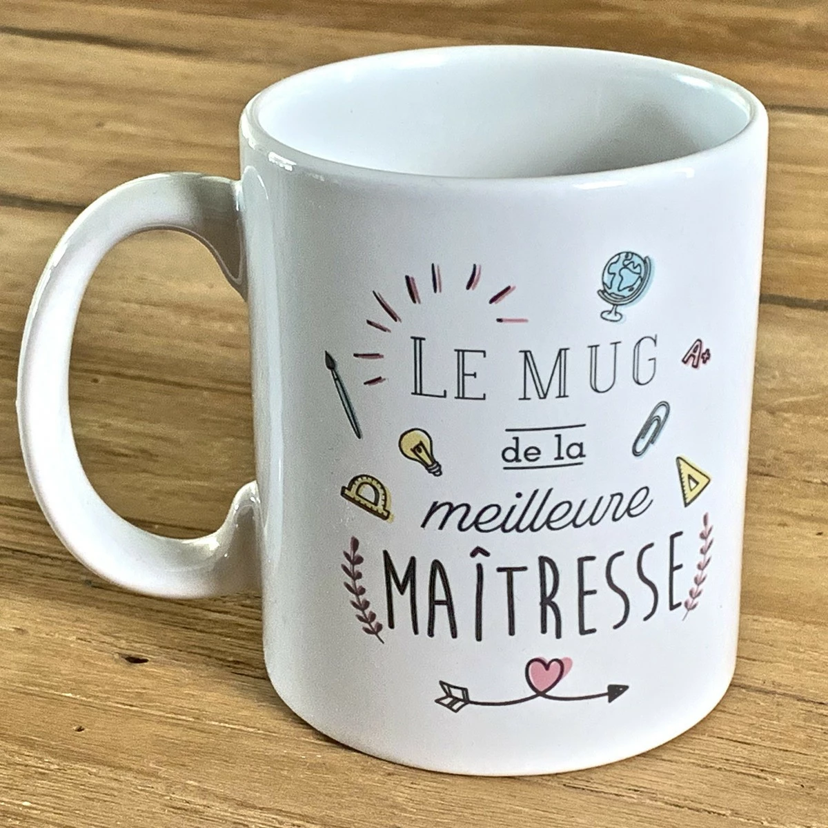 Cette jolie tasse aux motifs dessinés sur les deux faces de la tasse, comporte l’inscription « ». Votre institutrice sera certainement ravie de recevoir ce petit cadeau utile pour la remercier de la qualité de son travail. Le pourra servir tous les jours à votre maîtresse pour boire un café ou un thé. Cette tasse originale pourra également faire un parfait pot à crayons.