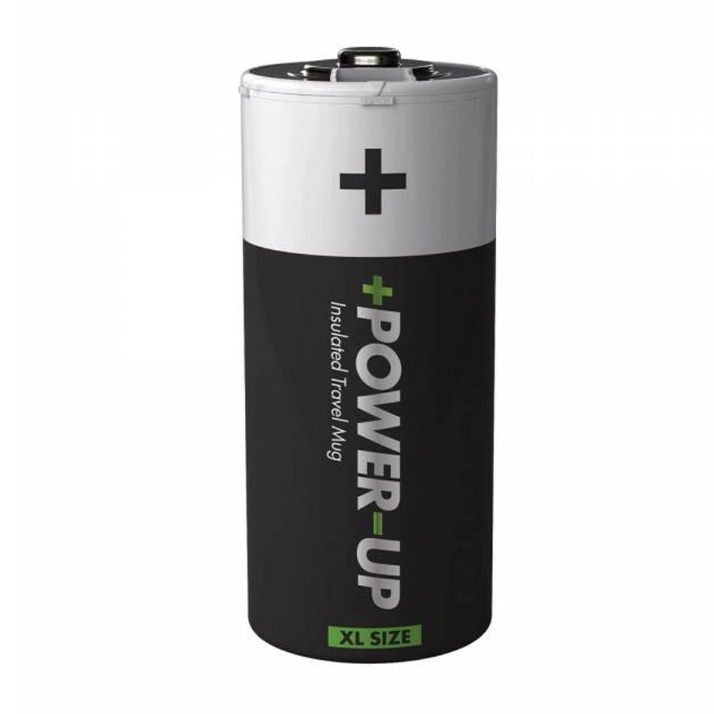Baisse de forme ? vos « batteries » sont à plat ? rien de tel que de refaire le plein d’énergie avec le Mug thermos Pile Power Up.