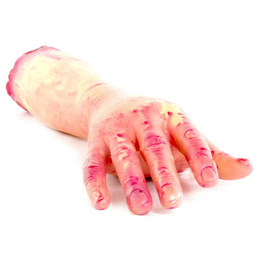 En latex et de la taille d’un vrai avant-bras, le est saisissant de réalisme. Arraché et complètement ensanglanté il laisse apparaître des os brisés avec des morceaux de chair arrachée à l’endroit où il est arraché, une horreur ! laissez le pendre coincé dans la porte de votre placard, dans le coffre de votre voiture, le réfrigérateur, la poubelle, les toilettes, la boîte aux lettres, sous la roue de votre voiture, à une fenêtre, dans un tiroir, la trappe du grenier, dans un sac, dans la douche, sous un meuble, dans une valise, dans le lit de votre soeur…. bref partout où vous pourrez faire une à votre victime. Un gadget bien dégoûtant qui trouvera une saveur particulière pour une.