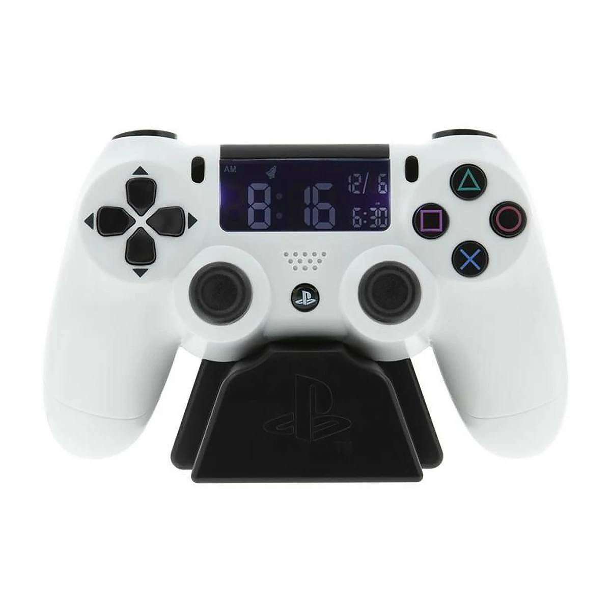 Le est spécialement dédié aux adorateurs de la console de jeux Playstation. Ce pour geek a la forme d’une manette de PS4 sur un socle de charge. Il affiche l’heure et la date via un écran numérique sur la face avant du contrôleur, en lieu et place de l’habituel Pad tactile. Le fait que ce soit une manette de PS4 qui vous réveille dès le matin devrait obligatoirement vous aider à vous tirer du lit, même après une nuit entière passée sur le dernier Assassin’s creed ou Call of Duty. Le est sous licence officielle PlayStation et est alimenté via USB (câble inclus).