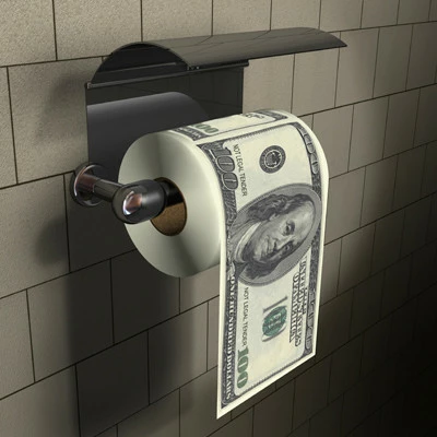 - rouleau de papier toilettes imprimé en billet de 100$.