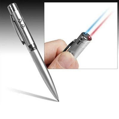 Difficile de trouver un stylo qui soit plus qu’un simple stylo ? Le stylo torche pointeur laser est à la fois un stylo en métal doté d’une pointe fine noire qui lui confère un grand confort d’écriture, une torche led bleue et un pointeur laser rouge.