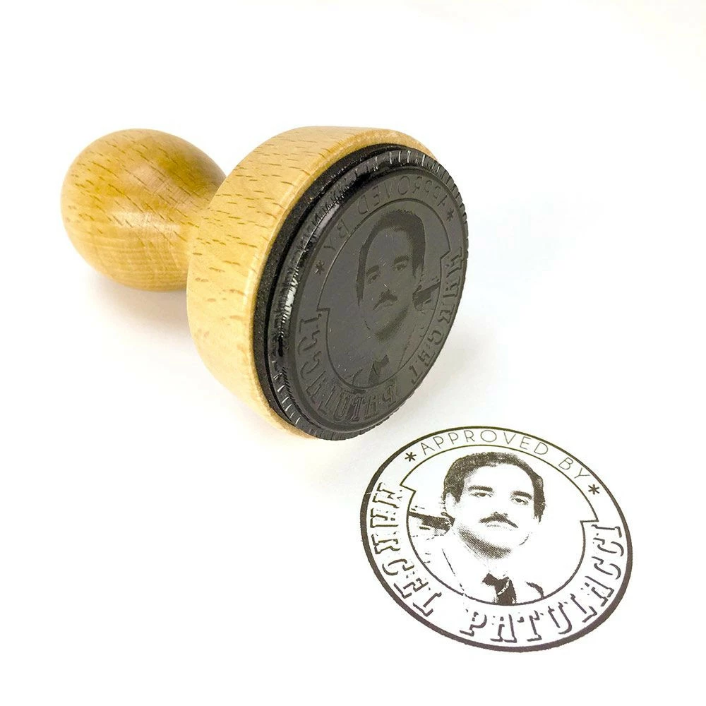 Souvenez-vous, c’était dans la Télé des Inconnus en 1990, on y découvrait alors un reportage hilarant sur un commissariat de quartier : Didier Bourdon incarne alors Marcel Patulacci, Brigadier Chef mais agent de la paix avant tout ! Retrouvez le birgadier chef sur ce maginifque tampon. Vous pourrez alors approuver par un puissant coup de tampon tous vos papiers, dossiers ou autres objets que vous souhaitez personnaliser.